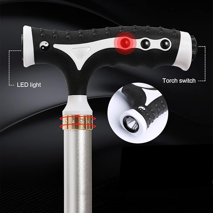 Su luz LED integrada, altura ajustable y asiento con superficie de masaje lo convierten en mucho más que un bastón: es libertad, confianza y alivio en cada paso.